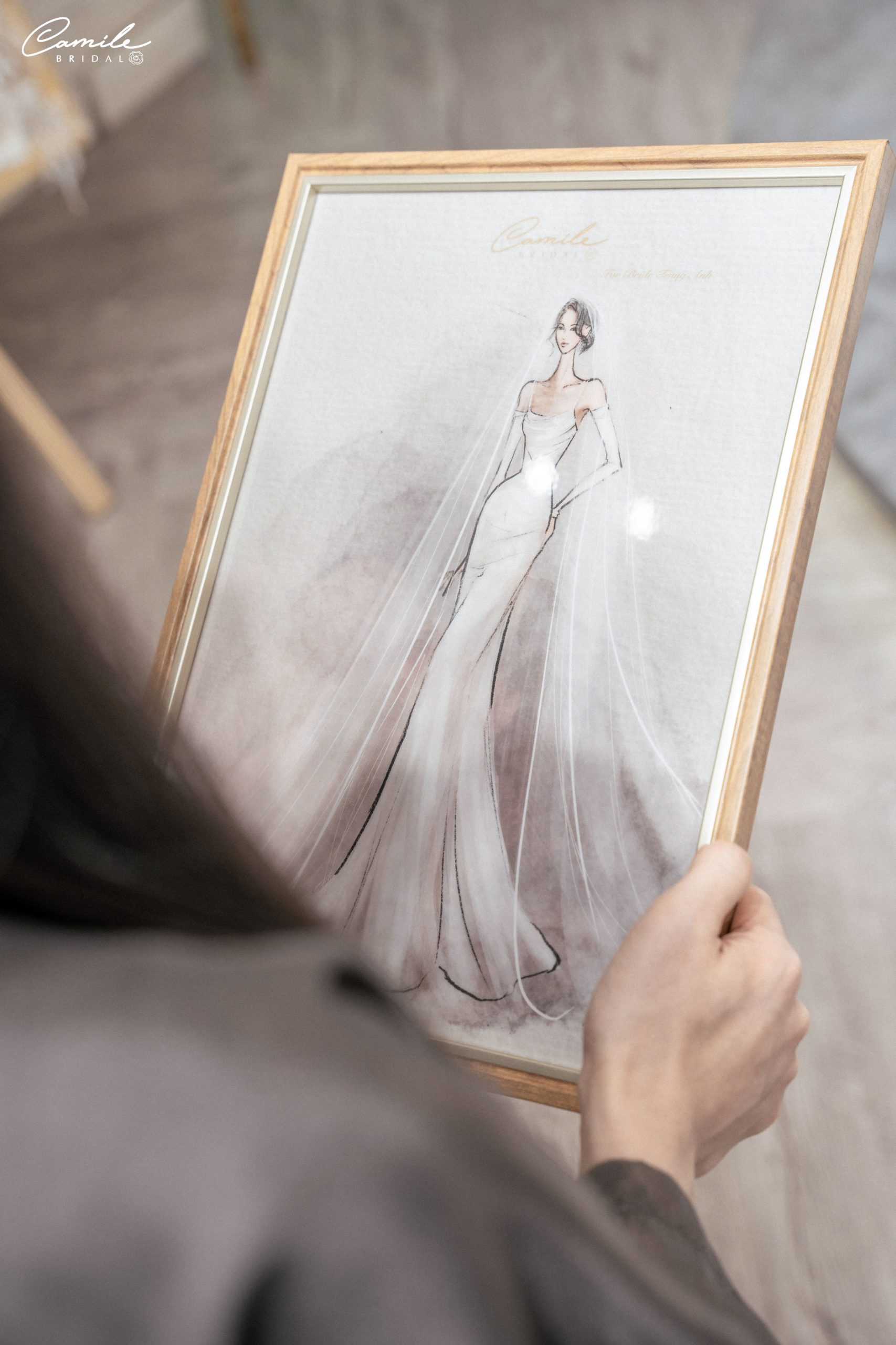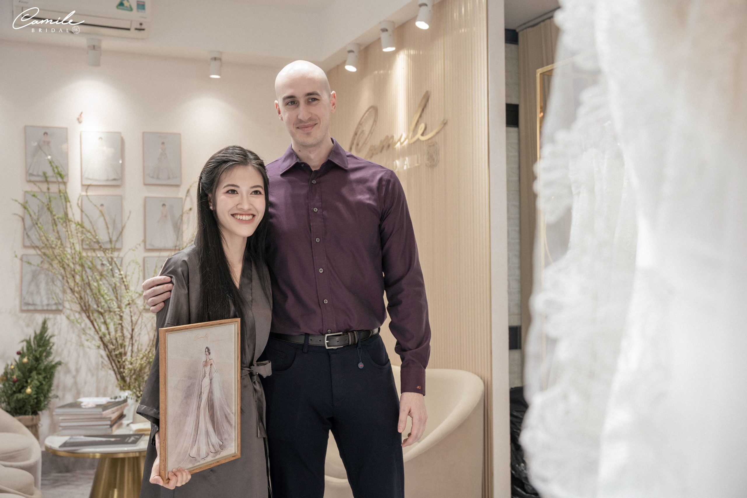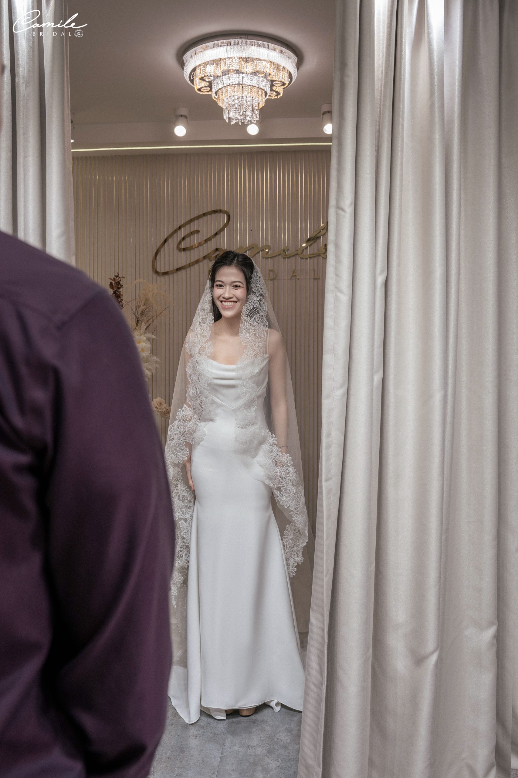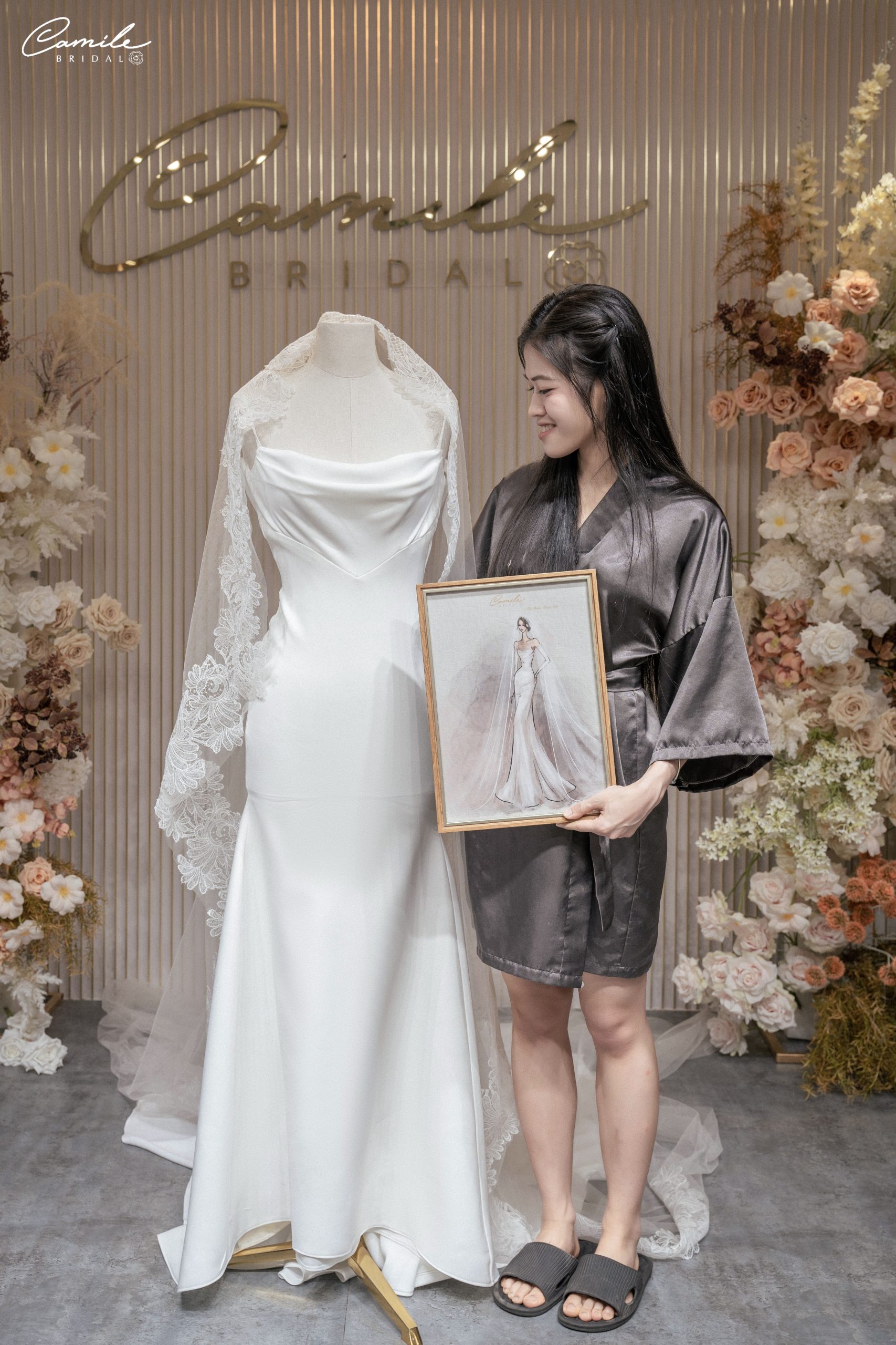 Through in-depth consultation and initial design sketches, the Camile team worked closely with Trung Anh to bring this vision to life, developing a silhouette that reflects true timeless elegance.