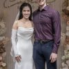 The custom-made gown for Trung Anh is distinguished by a softly draped bodice—one of Camile Bridal’s signature design elements.