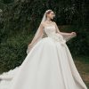 Dáng váy công chúa (ballgown) luôn là biểu tượng của sự kiêu sa. Với Look 02, phom dáng cổ điển được làm mới bằng các chi tiết hoa thủ công độc đáo, tạo nên sự hòa quyện giữa truyền thống và hiện đại. Đây là lựa chọn lý tưởng cho các lễ cưới tại sảnh tiệc sang trọng hoặc không gian có chiều sâu.
